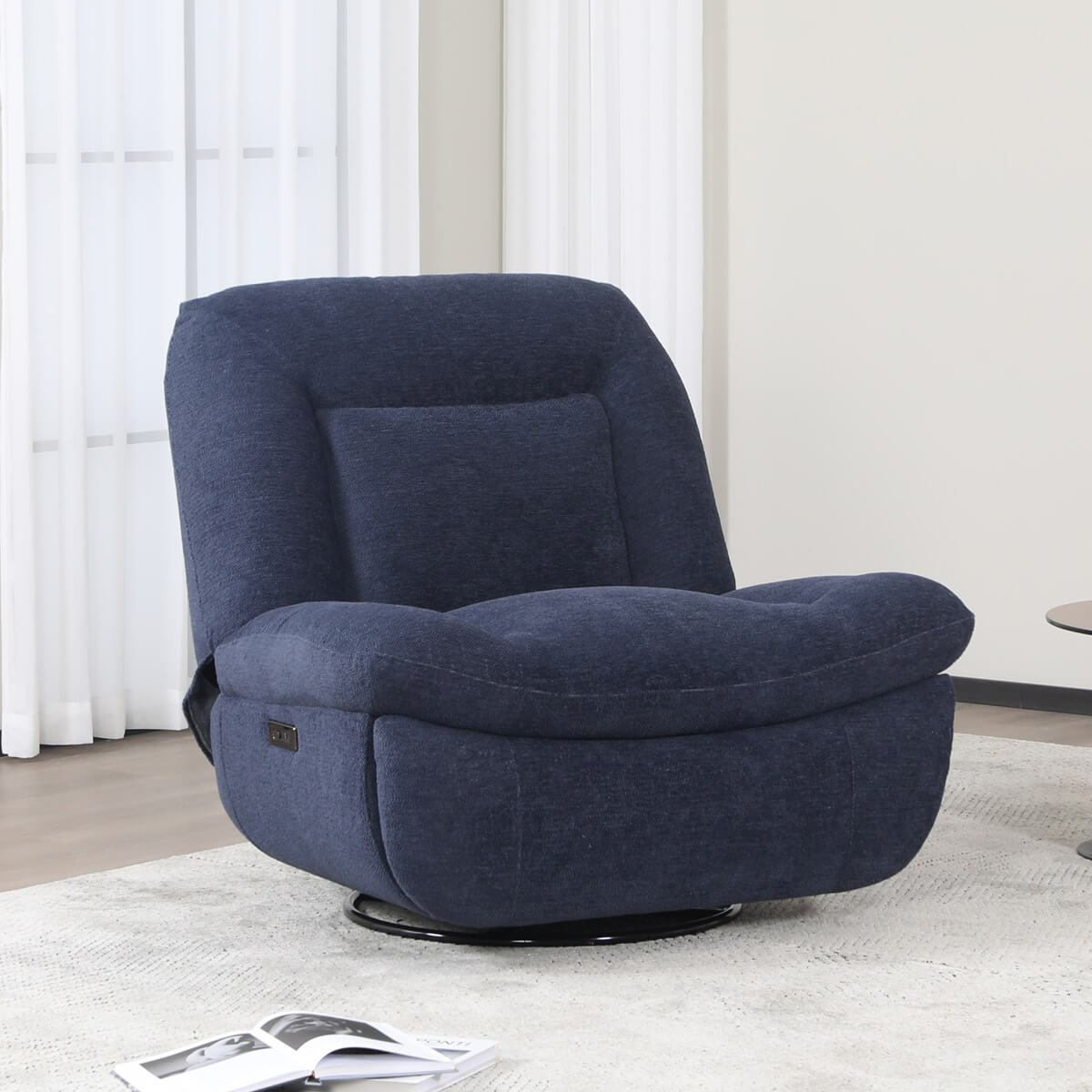 Our Ebba Power Recliner is the perfect blend of sophistication and innovation combined to create ultimate comfort. Upholstered in a soft fabric that not only adds a lavish touch but also provides an irresistibly soft and cozy seating experience. Take advantage of the swivel function and electric recline to effortless adapt to your comfort needs. Designed for relaxation, this is perfect for lounging in your living room, bedroom, or any casual space where comfort is a priority. Available in three colours.