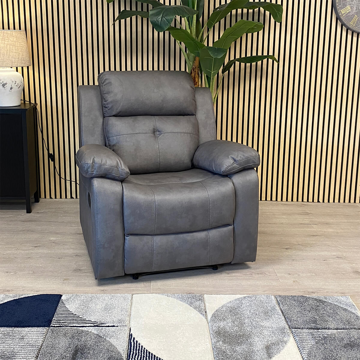 Our Gilmore reclining armchair has a sleek, modern design with padded armrests & button details featured in the cushions. With stunning design touches such as the buttoned detailing and  parallel stitching. The Gilmore will complement any modern or contemporary living space. The manual reclining function will take relaxation to the next level. Available in Twilight Grey or Brown – click here to see the whole range.