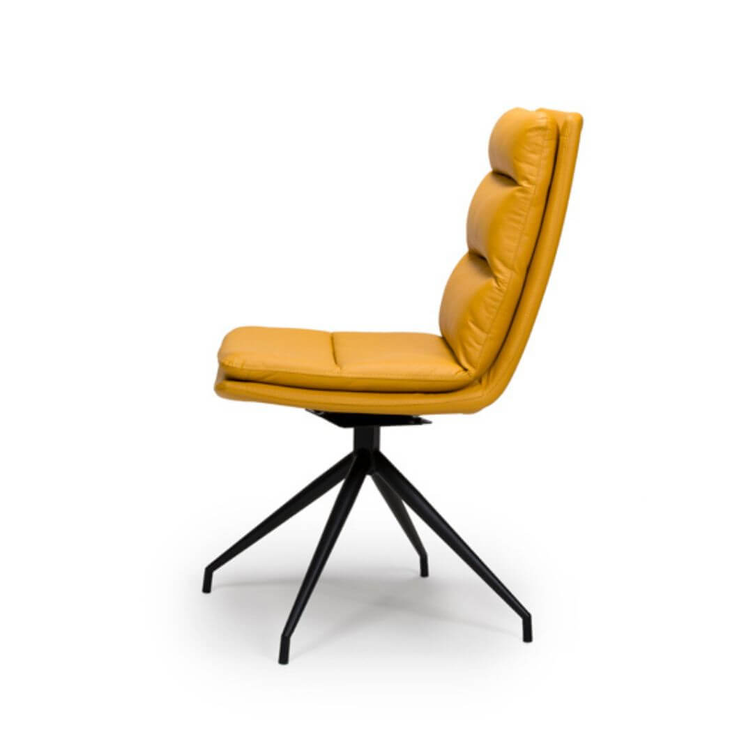 Introducing our exceptional Nobo dining chair, where exquisite comfort, design-led style, and functionality converge to redefine dining experiences. Embodying a distinctive swivel feature, this chair exudes sociable charm and effortless coolness, elevating the ambiance of any dining space with an edgy flair. Standing proudly on its sunray base, available in black or stainless steel, the chair is a striking fusion of form and function. It is offered in a palette of faux leather colours, allowing for versatile mix-and-match possibilities or the option to create a cohesive, trend-led design statement with a single colour choice.