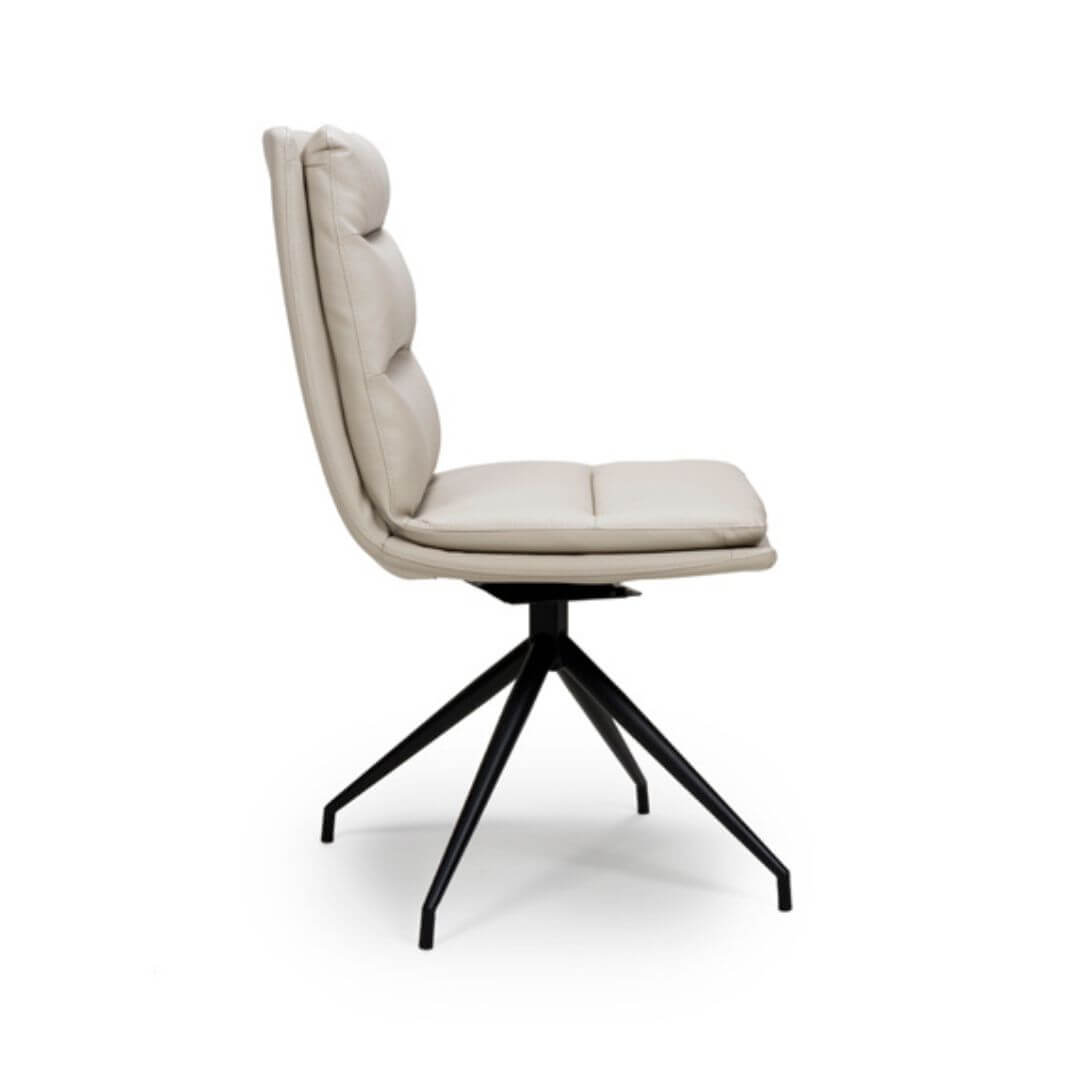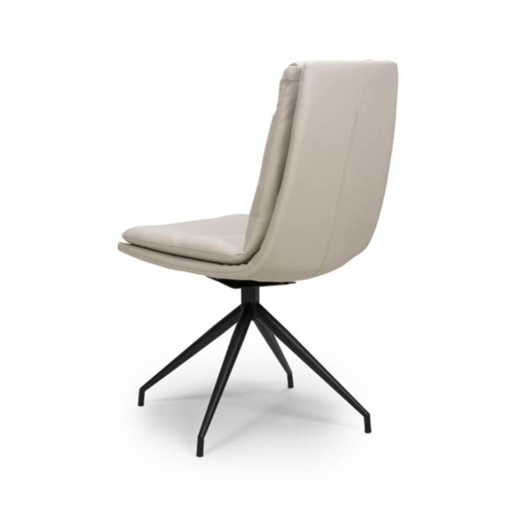Introducing our exceptional Nobo dining chair, where exquisite comfort, design-led style, and functionality converge to redefine dining experiences. Embodying a distinctive swivel feature, this chair exudes sociable charm and effortless coolness, elevating the ambiance of any dining space with an edgy flair. Standing proudly on its sunray base, available in black or stainless steel, the chair is a striking fusion of form and function. It is offered in a palette of faux leather colours, allowing for versatile mix-and-match possibilities or the option to create a cohesive, trend-led design statement with a single colour choice.