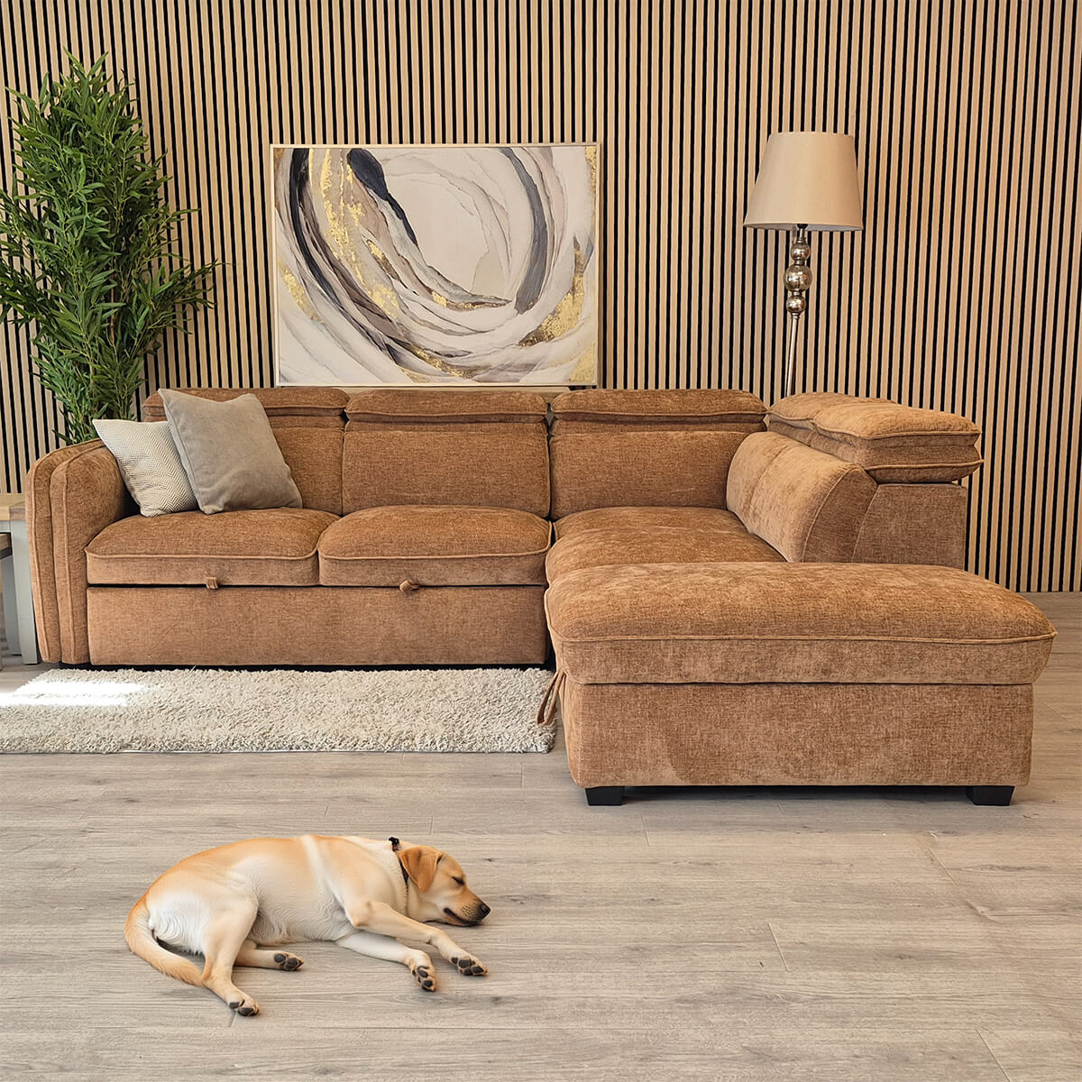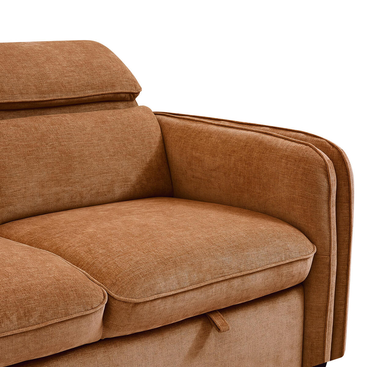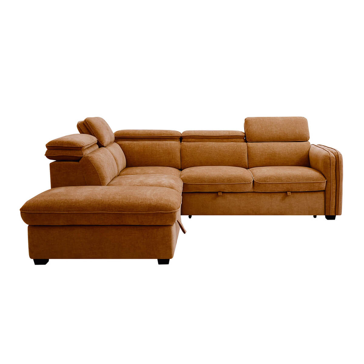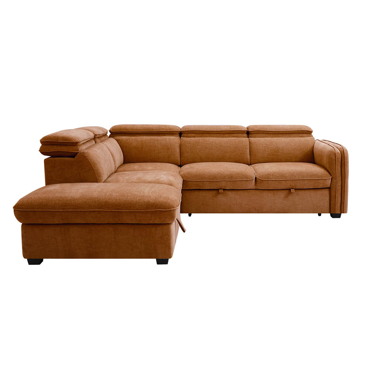 Our Roscoe Corner Sofa Bed in Rust combines modern style with practical comfort. Featuring pocket-sprung seating, built-in storage and multiple-position click-clack headrests on all seat backs. The Rosco offers versatile support and effortless relaxation, while easily converting into a comfortable sleeping space when needed. When it’s time to host guests, simply pull-out the extension to reveal a comfortable bed. Both right & left hand facing versions available, plus the ottoman is detachable for even more flexability.
