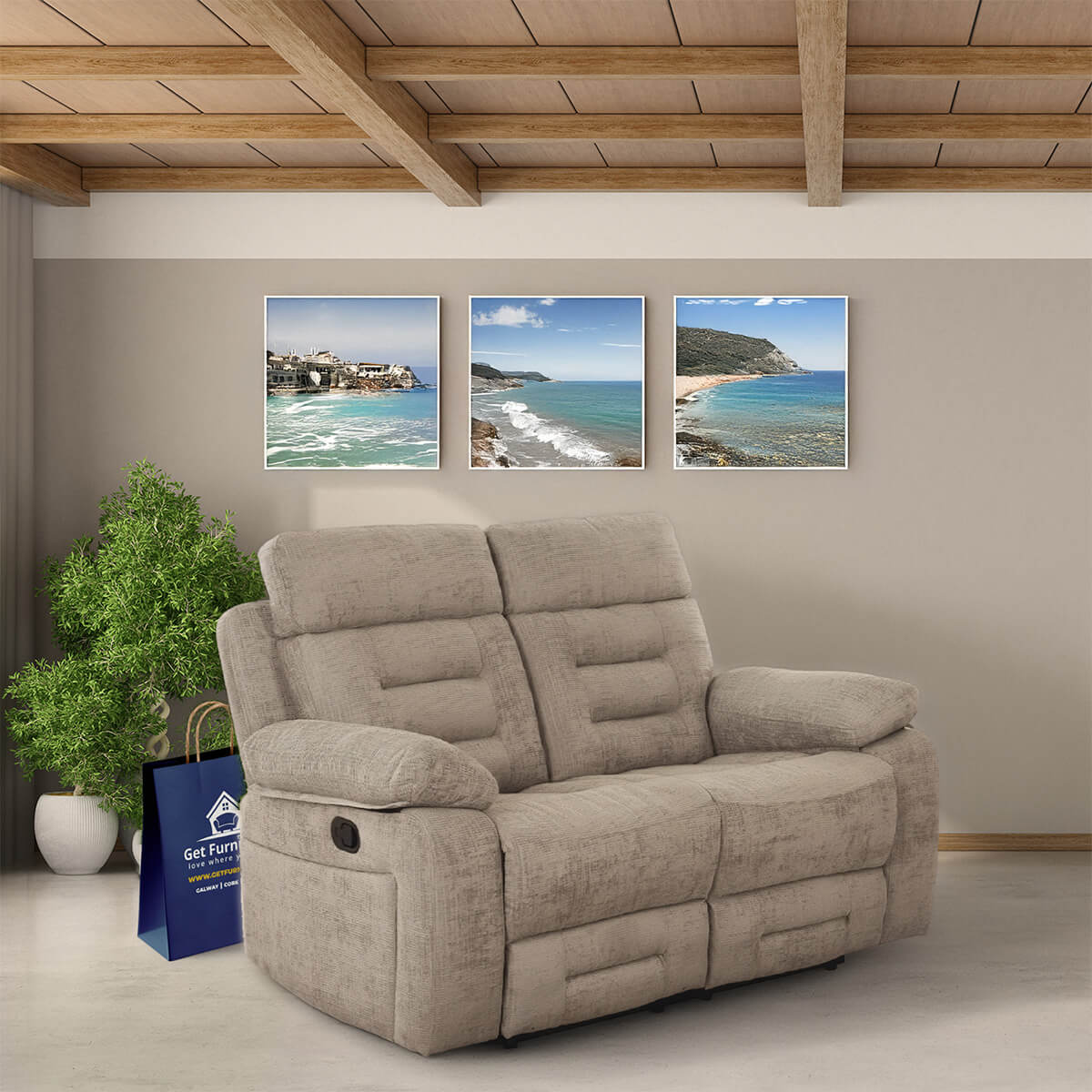 Our Wilbur 2 Seater Manual Recliner in Latte provides ultimate comfort.  Perfect for relaxing in style, this recliner is designed for both support and luxury. With it’s manual recliner, pocket sprung seating, lumbar support and padded armrests.