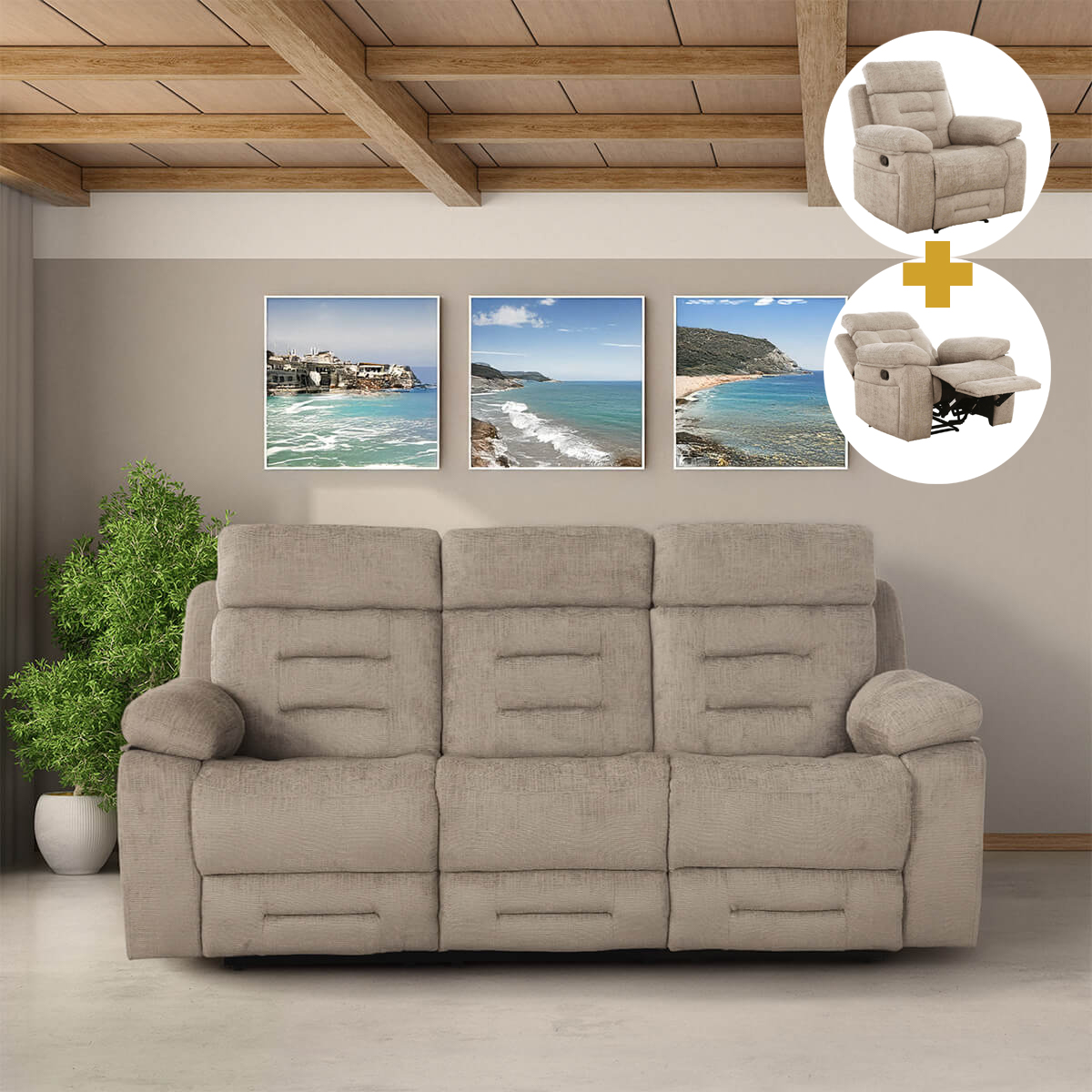 Our Wilbur 3+1+1 Suite in Latte provides ultimate comfort. Perfect for relaxing in style, this suite is designed for both support and luxury. All 3 pieces come with manual recliners, pocket sprung seating, lumbar support and padded armrests. See the whole range here.